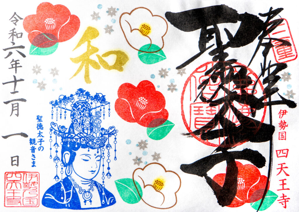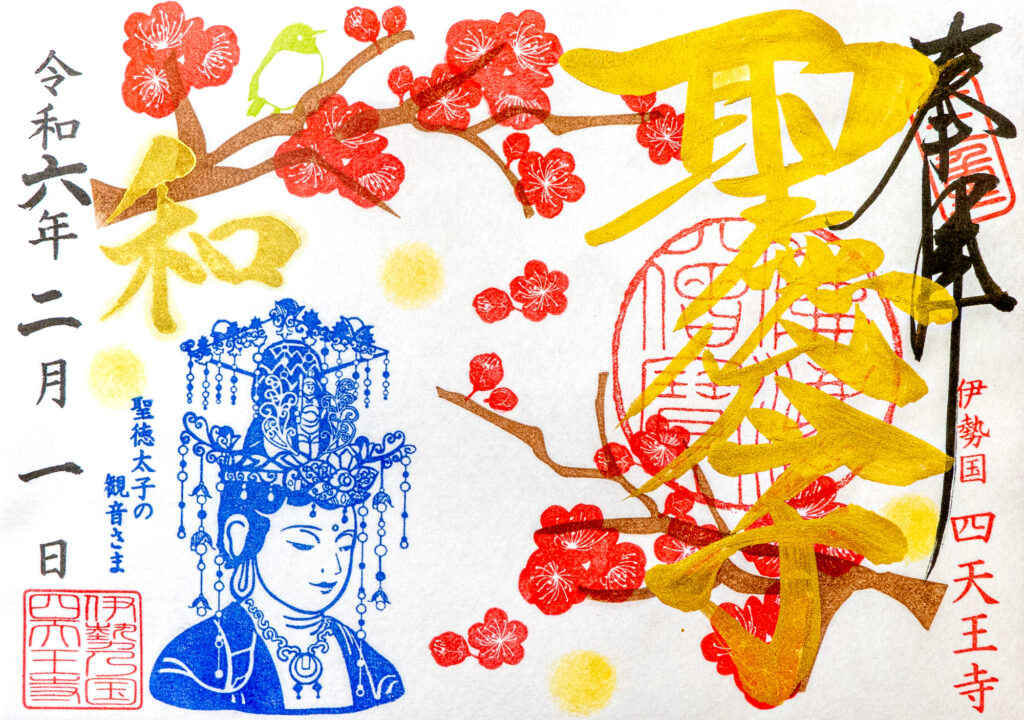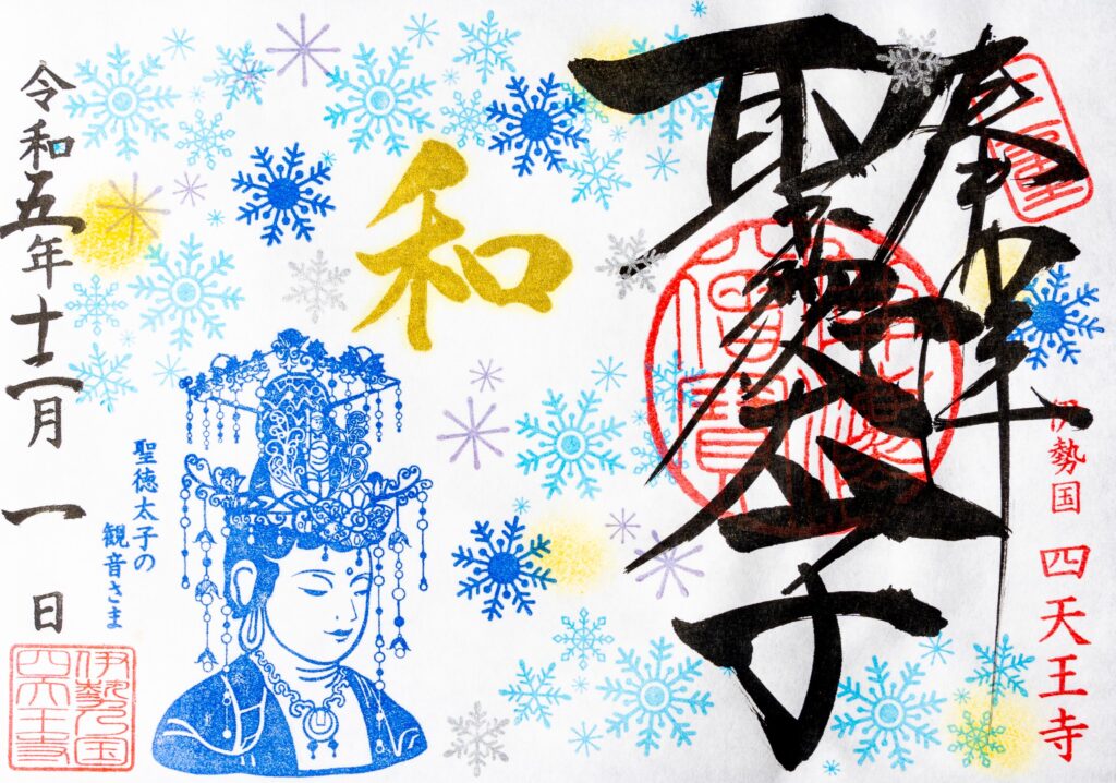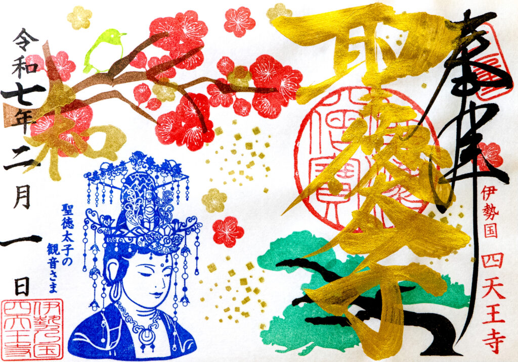 左:2023年1月限定御朱印 / 右:22日限定の金文字御朱印(2023年1月22日)聖徳太子の観音さまについて
