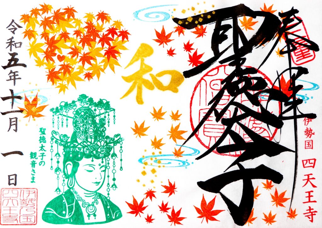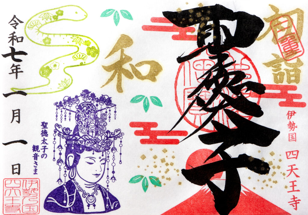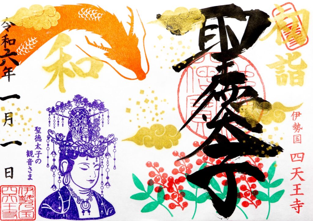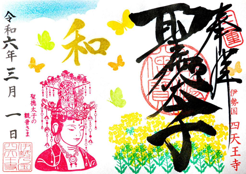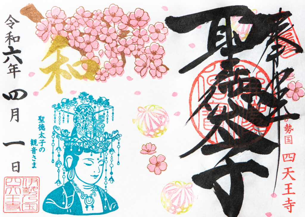 左:2023年1月限定御朱印 / 右:22日限定の金文字御朱印(2023年1月22日)聖徳太子の観音さまについて