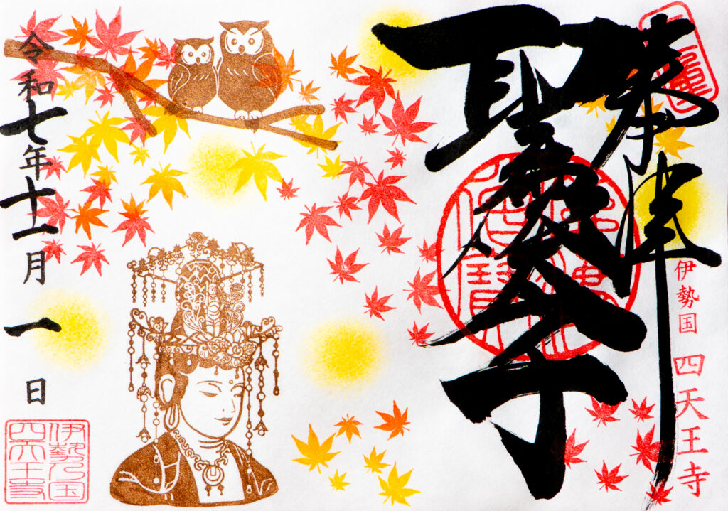 左:11月限定「もみじと観音さま」 / 右:12月限定「椿と観音さま」左:9月限定「満月と観音さま」 / 右:10月限定「イチョウと観音さま」左:7月限定「蓮の花と観音さま」 / 右:8月限定「アサガオと観音さま」左:5月限定「藤の花と観音さま」 / 右:6月限定「紫陽花と観音さま」左:3月限定「宝石と新しい観音さま」 / 右:4月限定「桜と観音さま」左:1月限定「トラと南天」 / 右:2月限定「金文字の聖徳太子」2021年